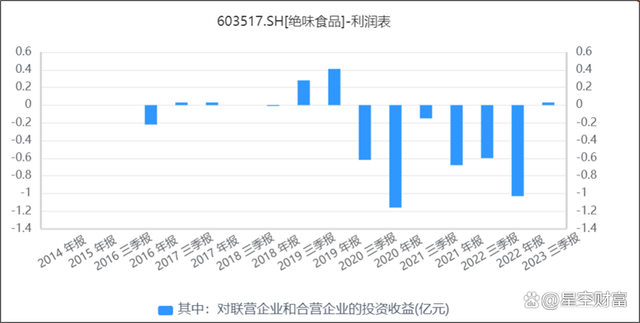 消费疲软的大背景下,整个餐饮行业竞争不断升级。数据显示:2016年以来,绝味对联营与合营企业的投资收益仅在2017年和2019年为正,其他年份均为亏损。2020-2022年,亏损最为严重,合计亏损近3亿。2023年前三季度,虽为正收益,但也仅仅300万,根本不足挂齿。