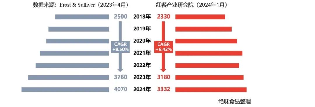 行业趋势下行也成为了挡在绝味食品面前的一大障碍。根据Frost&Sullivan和红餐产业研究院的数据显示,卤制品行业增速明显放缓,2018年-2023年复合增长率为6.42%,2023年市场规模约3180亿元。绝味食品强调,2024年虽然原材料价格同比有所下降,但是行业整体面临严峻的经营压力,出清明显,龙头企业也同样经受生存考验。