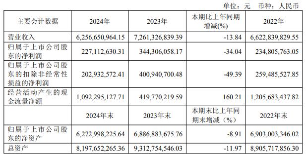 4月10日,绝味食品(603517)发布2024年年度报告。报告指出,由于市场竞争加剧,公司2024年经营承压,实现营业收入约62.57亿元,同比下降13.84%;实现归属于上市公司股东的净利润约为2.27亿元,同比下降34.04%。
