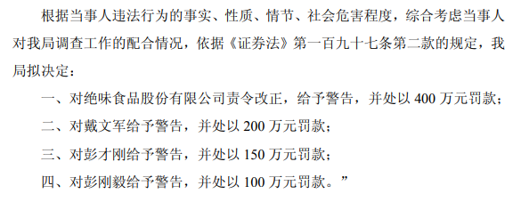 湖南证监局的处罚决定显示,除公司被罚款400万元外,时任董事长兼总经理戴文军、财务总监彭才刚、董事会秘书彭刚毅分别被处以200万、150万和100万元罚款。绝味食品在公告中致歉并表示将“加强合规建设常态化”,但市场更关心的是,这家卤味巨头的经营状况是否如财务数据般出现了“失真”。