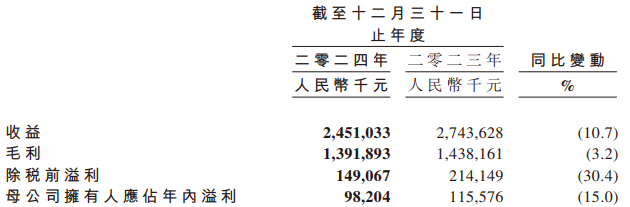 2024年公司实现营收62.57亿元,同比下降13.84%;净利润2.27亿元,同比大跌34.04%,创下2017年上市以来最差净利润表现。