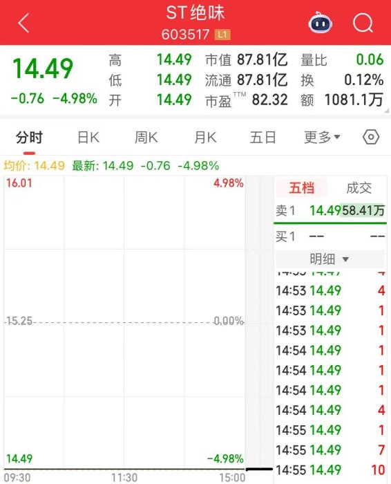 ST绝味23日一字跌停。