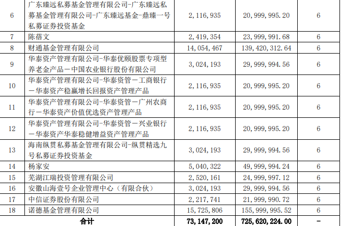 众源新材9月5日公告,本次非公开发行7314.72万股公司股份,发行价9.92元/股,募集资金7.26亿元。财通基金、中信证券、诺德基金等18名投资者获配。
