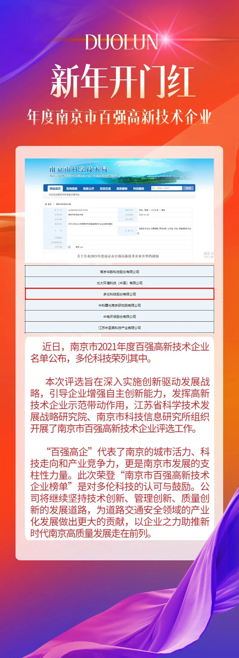 新年开门红 | 多伦科技入选年度南京市百强高新技术企业名单