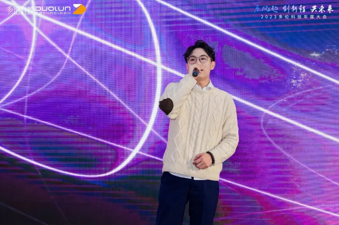 2023多伦科技年度大会为集团总结计划及表彰环节,温暖有力的“向光而行——致2023年努力奋斗的多伦人”回顾视频开启了本次大会,会议由多伦科技公共关系部魏君睿主持。