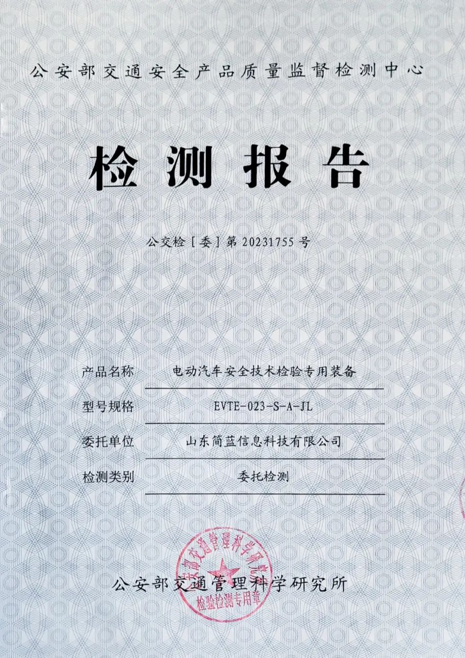 近日,多伦科技旗下简蓝科技荣获全国首批国家认证《电动汽车安全技术检验专用装备》检测报告,这标志着公司在电动汽车安全技术检验领域取得了重要突破,在构建新能源汽车安全运行“年检”新模式中取得了关键进展。