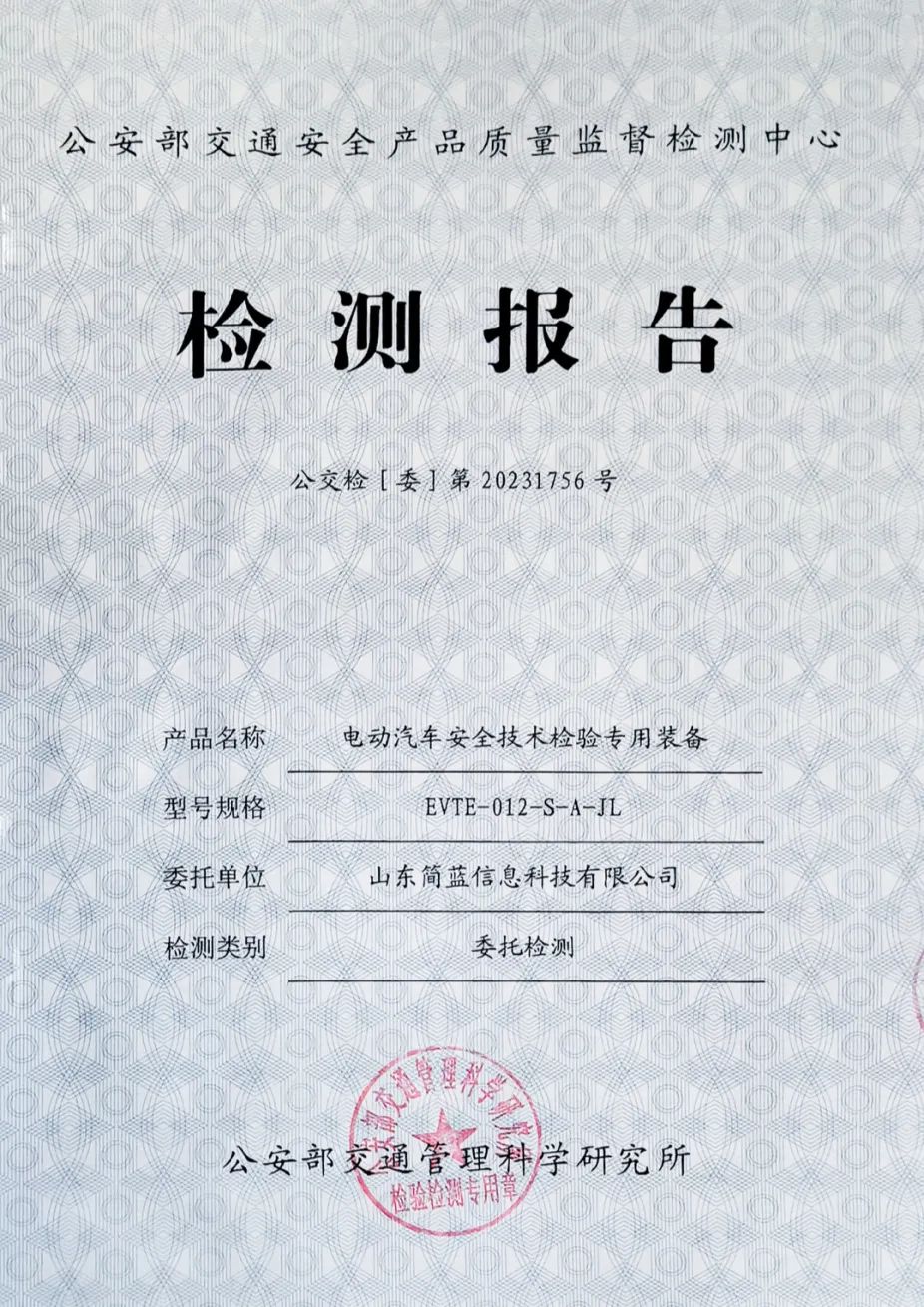 通过该课题,公司成功研发了三套新能源汽车检验设备:安规检测设备、动力电池与整车安全检测设备及车载OBD检测设备。通过持续提升设备的性能稳定性与质量可靠性,首批通过了公安部交通管理科学研究所的严格检测,荣获了这份具有里程碑意义的检测报告。
