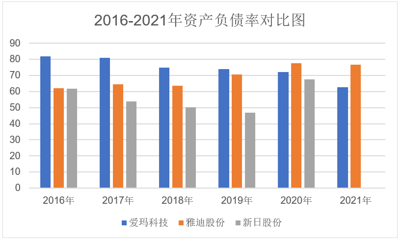 从账面上来看,爱玛科技并不差钱,货币资金每年都有增无减,从2016年的21.73亿已涨至2021年的28.46亿元。资产负债率也有所降低,从2016年的81.97%降至2021年的62.83%。