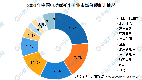由中商产业研究院、摩托车商会整理的数据可知,2021年中国电动摩托车企业市场份额统计中,爱玛科技都未能进入前十,而同行雅迪、绿源、台铃、新日都赫然在榜。