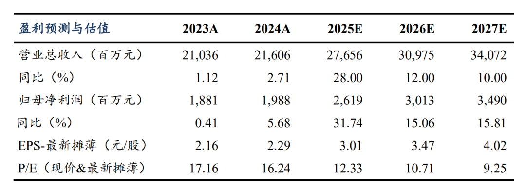 盈利预测与投资评级: