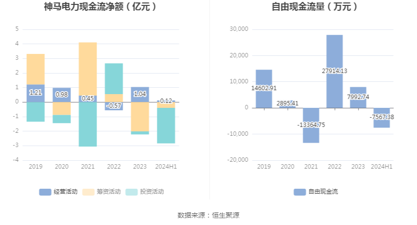 进一步统计发现,2024年上半年公司自由现金流为-7567.38万元,上年同期为2181.14万元。