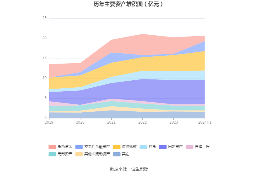 资产重大变化方面,截至2024年上半年末,公司货币资金较上年末减少66.32%,占公司总资产比重下降13.59个百分点;交易性金融资产较上年末增加642.19%,占公司总资产比重上升10.43个百分点;应收账款较上年末增加19.12%,占公司总资产比重上升3.32个百分点;存货较上年末增加12.53%,占公司总资产比重上升1.08个百分点。