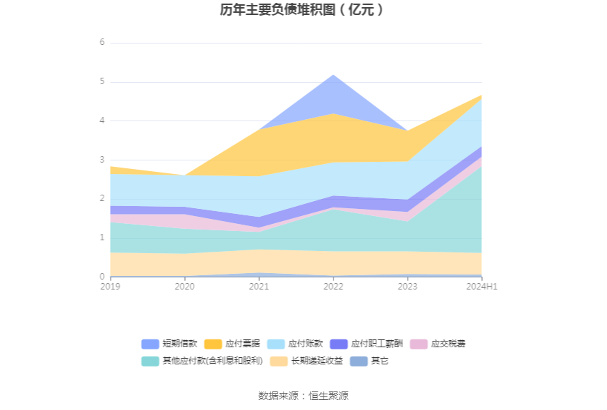 负债重大变化方面,截至2024年上半年末,公司其他应付款(含利息和股利)较上年末增加188.71%,占公司总资产比重上升6.95个百分点;应付票据较上年末减少87.49%,占公司总资产比重下降3.43个百分点;应付账款较上年末增加24.27%,占公司总资产比重上升1.04个百分点;应付职工薪酬较上年末减少16.45%,占公司总资产比重下降0.29个百分点。