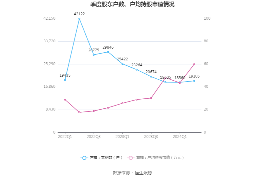 筹码集中度方面,截至2024年上半年末,公司股东总户数为1.91万户,较一季度末增长了545户,增幅2.94%;户均持股市值由一季度末的43.55万元上升至59.94万元,增幅为37.63%。