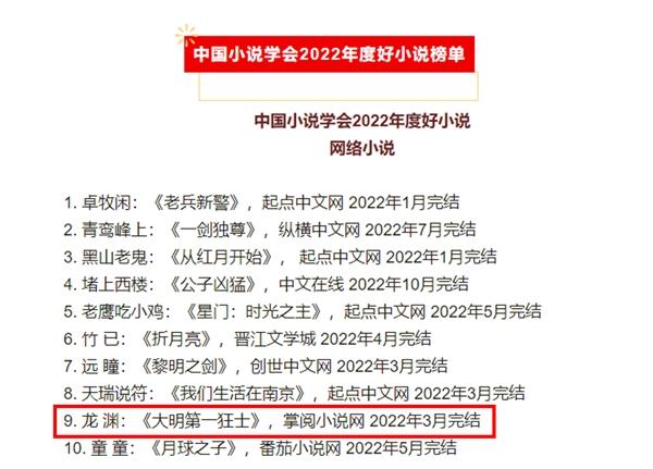 近日,掌阅科技旗下原创网络文学作品再获两项殊荣,《大明第一狂士》成功入选中国小说学会“2022年度好小说”榜单,《沉默之觉醒》则斩获第四届“金熊猫”网络文学奖中短篇单元“铜奖”殊荣。