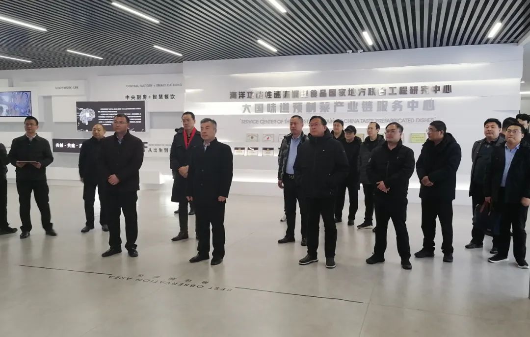 考察团先后调研了生产基地、中央厨房、分拣中心和“大国味道”预制菜产业链服务中心,详细了解了公司发展历程、生产经营、产品体系、创新研发和供应链搭建等方面的情况。