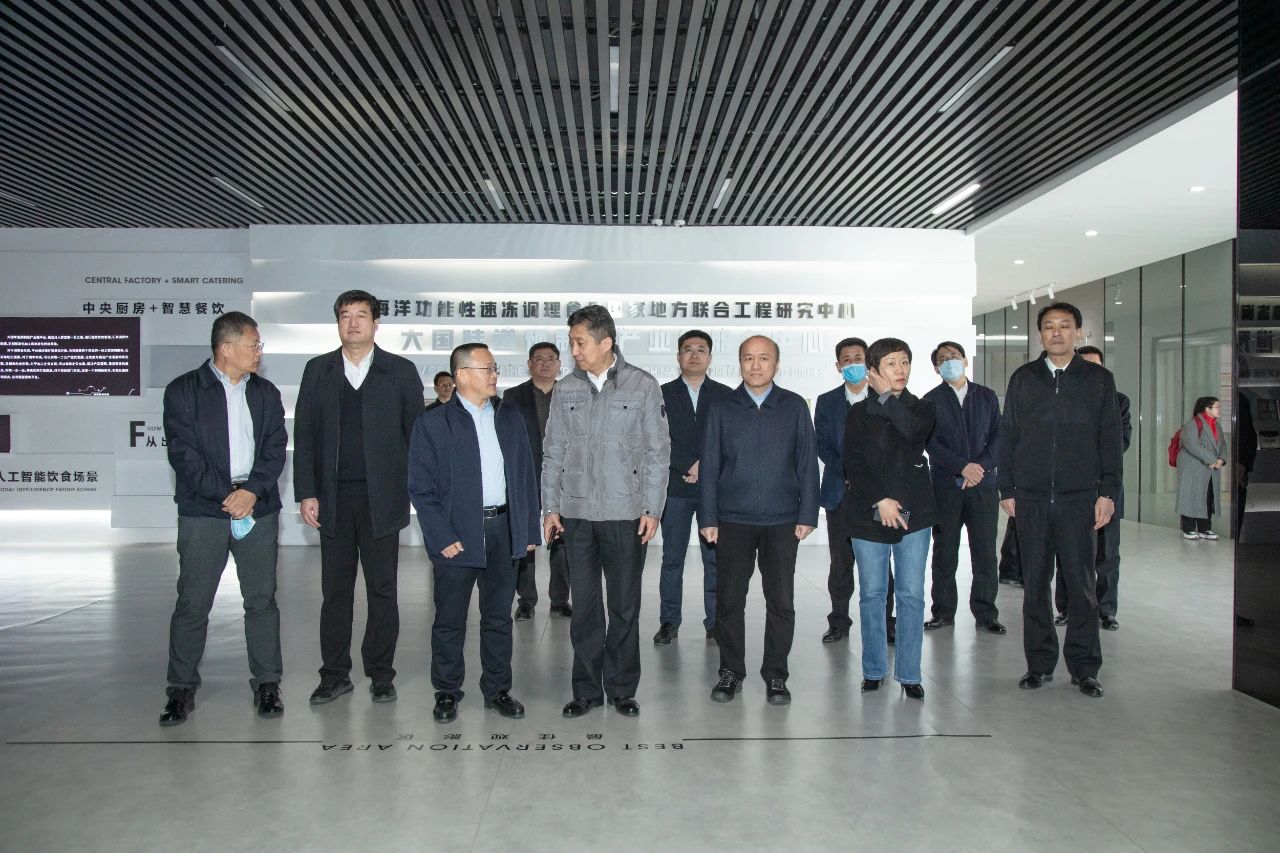 在“大国味道”预制菜产业链服务中心,调研组详细了解了企业生产经营、发展规划和外贸业务开展情况,听取了诸城市有关工作介绍。