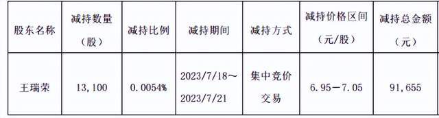 7月22日,惠发食品公告,副总经理兼财务总监王瑞荣减持公司股份1.31万股,减持时间是7月18日-21日,减持价格为6.95-7.05元。