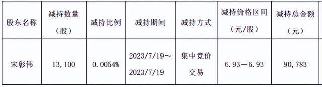 7月20日,惠发食品公告,董事兼副总经理宋彰伟减持公司股份1.31万股,减持时间是7月19日,减持价格为6.93元。