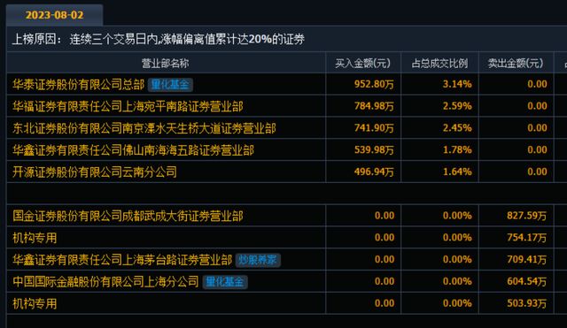 惠发食品身披热门概念,受到资金追捧。8月2日,盘后有龙虎榜上,量化资金、游资炒股养家、机构席位现身。这意味着,惠发食品的大涨由量化基金、游资等共同助推的结果。