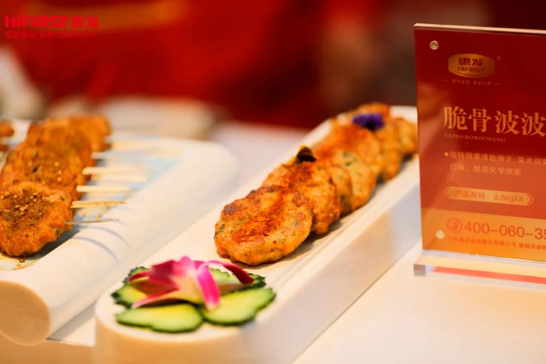 作为本次大会的重头戏,全球新品发布环节备受瞩目。惠发食品产品推荐官鞠岩发布2024年战略新品“穿越千年的丝路美食——小肉烧系列”。小肉烧系列产品一经上市,赢得众多经销商的高度认可,收获广大消费者的喜爱。同时,本次新品发布围绕涮煮、团餐、酒店、烧烤、家庭五大场景推出重磅新品,联合合作伙伴新澳旭、海魂星推出战略合作产品,一款款产品精彩亮相,引爆味蕾。众多合作伙伴抓住机遇,踊跃参与,新品订购数量不断攀升。