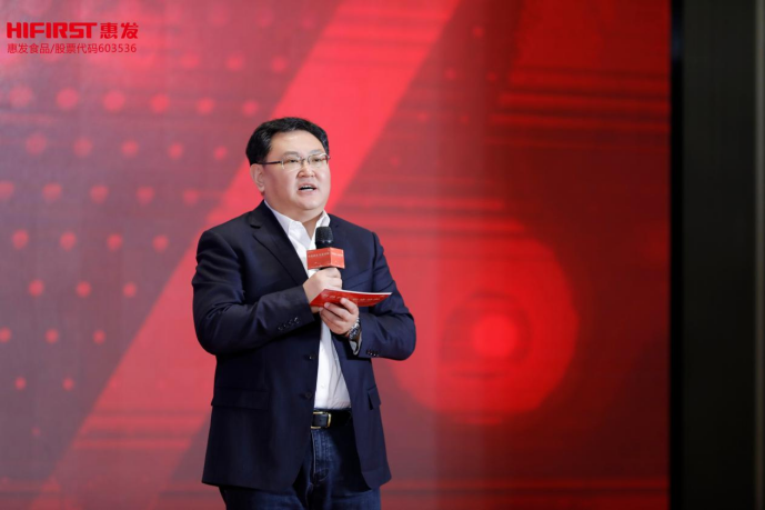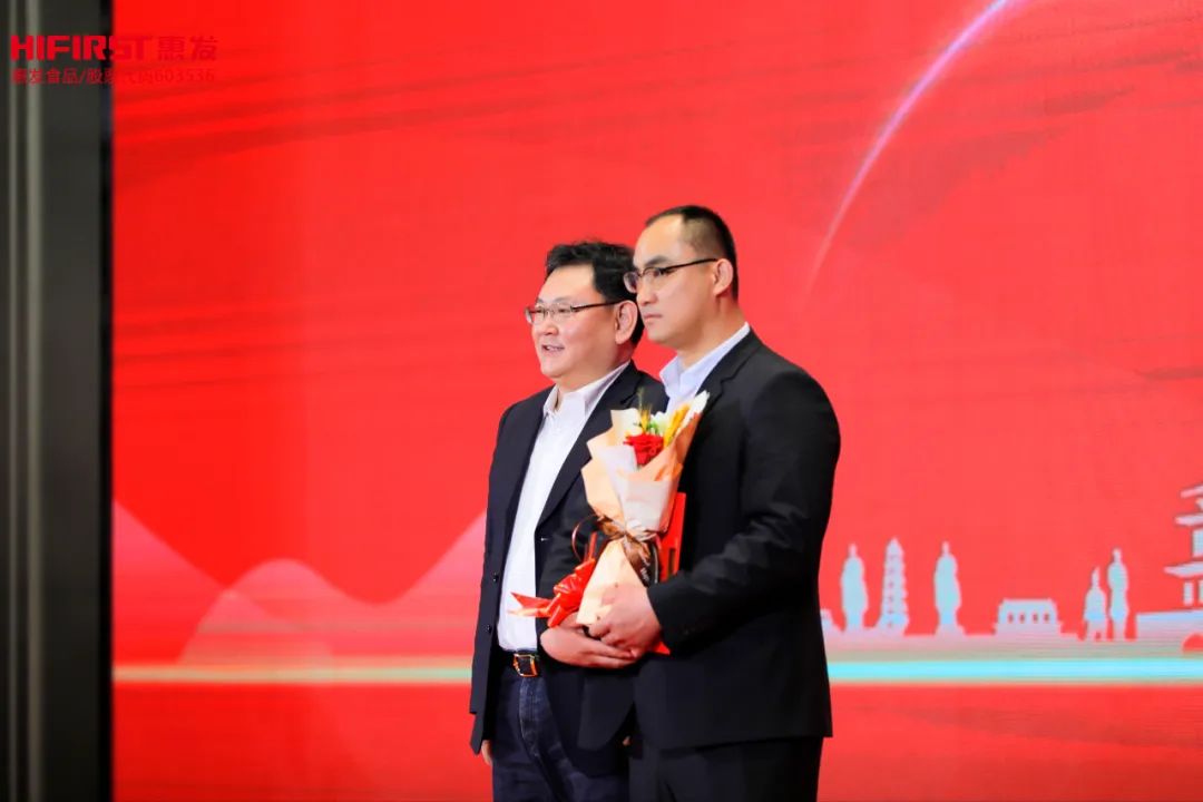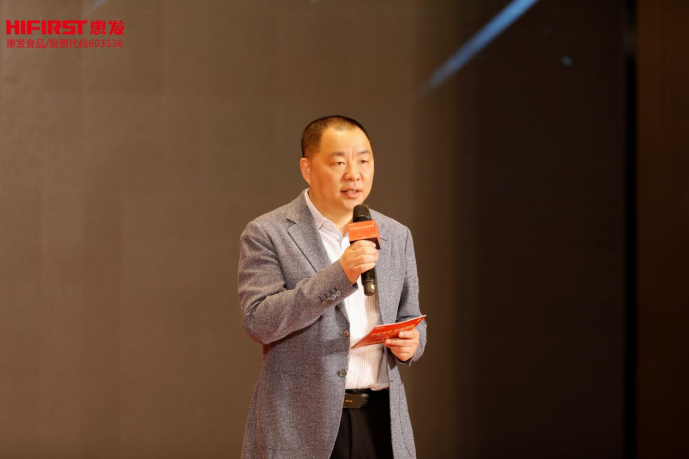 会议伊始,惠发食品党委书记、董事长惠增玉致辞。惠董对与会嘉宾的到来表示欢迎,并对大家长期以来对公司的信任与支持表示感谢。惠董指出,合作伙伴是公司与消费者之间的桥梁,是推动公司跨越发展的核心力量。多年来,公司与合作伙伴之间形成了强大的凝聚力和向心力,创造了行业奇迹。站在全新起点,开启全球视野。公司将坚守初心使命,聚焦一切力量,夯实国内市场、拓展国际市场、建强“大国味道”新零售板块,全面打造国内国际、线上线下一体化产业共享平台,与合作伙伴共谋未来、共享成果,共同构筑食品行业崭新未来。