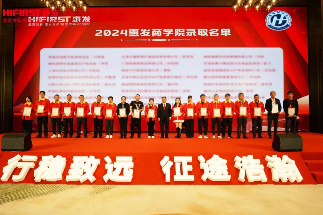 为提升合作伙伴的专业技能与经营管理能力,惠发食品商学院在会上开班,打造最强赋能行动。在经验分享环节后,隆中谏策品牌管理机构创始人于维民作为特邀嘉宾主持“高效赋能,融合发展”为主题的2024惠发商学院开班仪式。惠发商学院院长、惠发食品董事长惠增玉发表致辞,惠董表示将努力把惠发商学院打造成一个培养优秀人才、推动企业发展的摇篮,希望合作伙伴们通过商学院的学习,更好地服务客户、开拓市场、实现价值,为企业持续高质量发展再添新的动能。