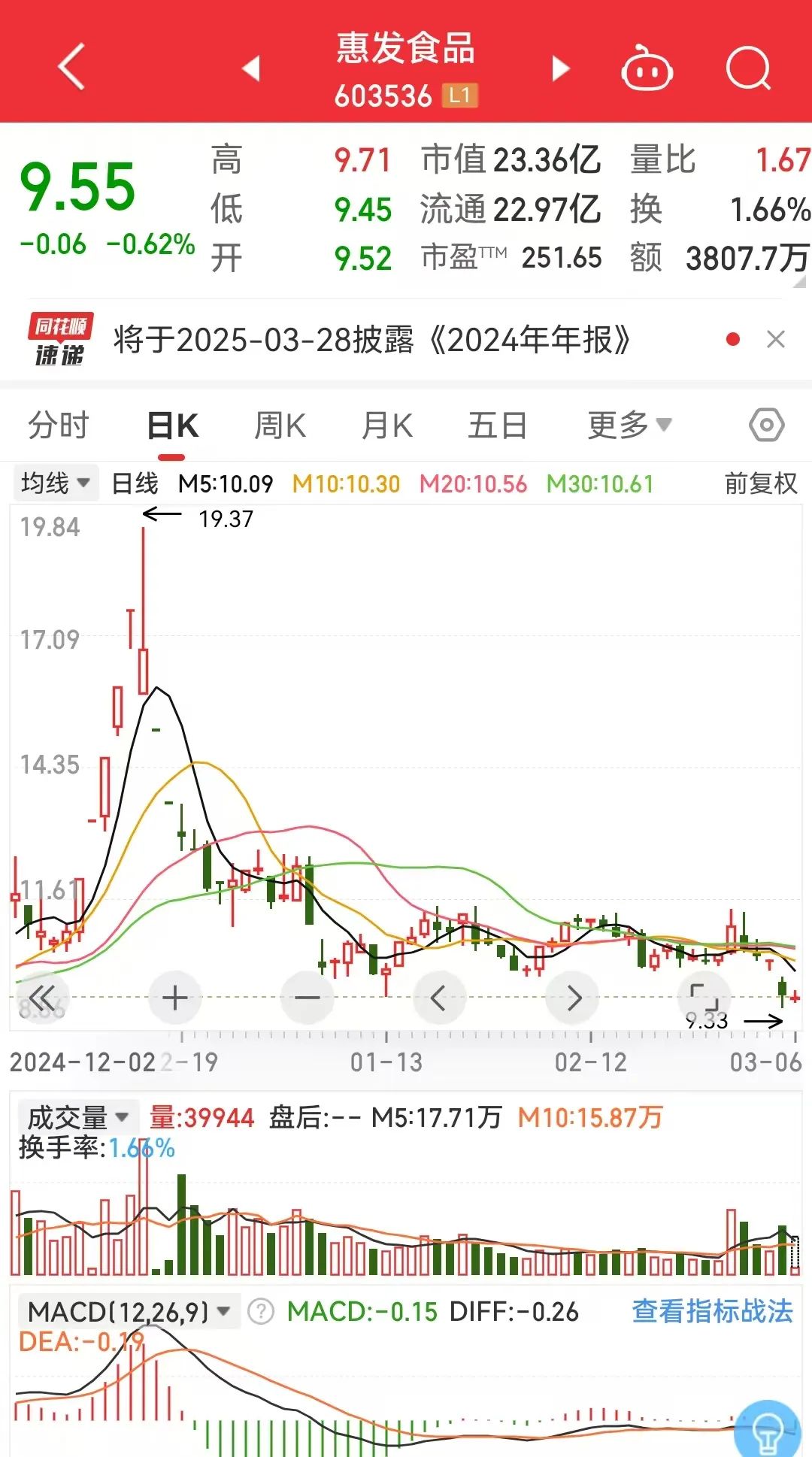 消息一出,惠发食品5日大幅低开,盘中一度跌停,目前股价仅相当于去年12月中旬的一半,跌幅可谓惨烈。