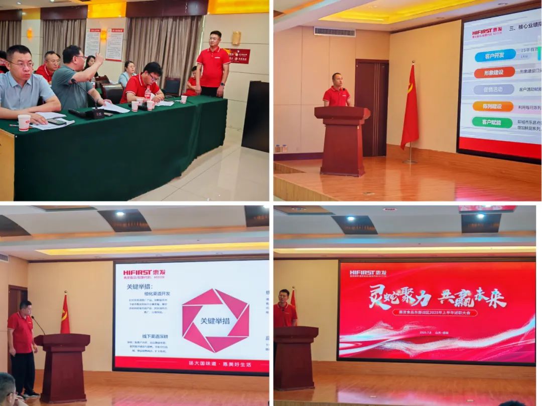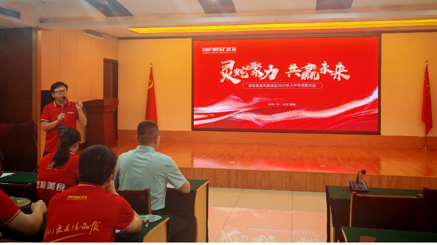 7月8日,惠发食品东部销售大区召开2025年上半年述职大会。惠发食品副总经理臧方运、东部销售大区负责人张英霞、人力资源总监沈杰、东部销售大区总监都桂文及东部销售大区全体销售经理出席活动。