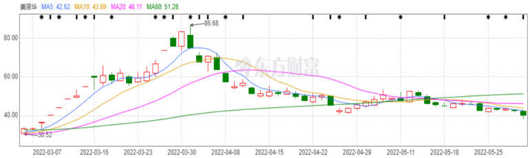 但目前公司的二级市场来看,其股价在经历新冠药物概念股的爆炒后,再次迎来回落,其股价已经由最高时候的86.68元/股降至今日收盘价格的40.16元/股,跌幅达53.66%,已经腰斩。