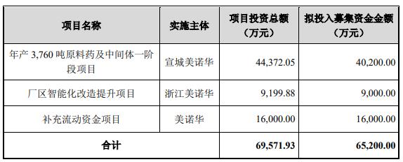 昨晚,美诺华发布2023年度向特定对象发行股票预案。公司本次向特定对象发行股票募集资金总额不超过65200.00万元(含本数),扣除发行费用后的募集资金净额拟用于年产3760吨原料药及中间体一阶段项目、厂区智能化改造提升项目、补充流动资金项目。