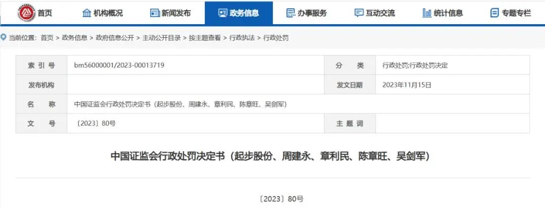 2023年11月,因财务造假、欺诈发行等违法违规行为,ST起步及4位高管被证监会行政处罚。