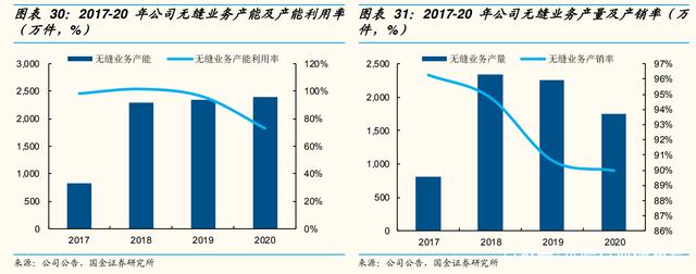 随着主要产能向越南、贵州迁移,公司规划绍兴工厂未来将主要作为设计研发及高端订单生产基地。目前公司的产能正在稳步扩产中,考虑到转化为实际订单的滞后性,预计 22 年无缝业务销量将会有明显提升。