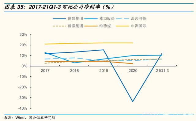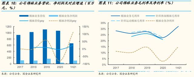 2017-19 年棉袜业务净利率提升 3.4Pct 至 14.55%,经 20 年大幅下滑至 2.82%后,21 上半年实现 14.98%、恢复至疫情前水平。