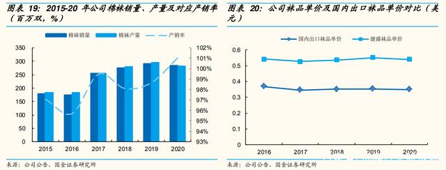 公司过去五年产销率稳定在 95%左右、订单饱满。2020 全年公司棉袜销售均价为 0.58 美元/双,远高于当期全国棉袜出口均价 0.35 美元/双,公司生产的棉袜大部分供给海外一线知名运动品牌,高品质下销售价格高于市场均价。