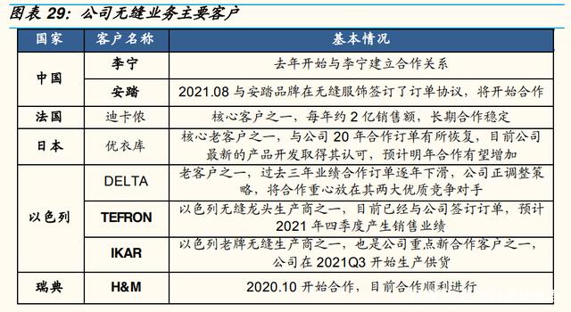 目前公司的无缝业务在越南兴安、我国的贵州和绍兴地区共有三大基地。其中越南兴安工厂目前规划 400 台织机、截至 1H21 已建的 110 台已经逐步投产、开工率 70%以上,逐步实现规模量产;按照公司规划,未来兴安基地产能规模将达到 400 台以上,将主要承接海外客户大订单。