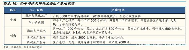 另一方面,公司继续在越南推进三年计划,在越南清化工厂新增 2000 台袜机,对应产能 1.4 亿双。