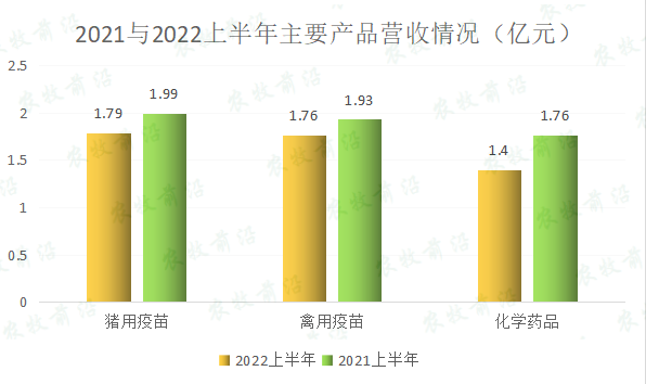 2022上半年,普莱柯猪用疫苗、禽用疫苗以及化学药品营收分别为1.79亿元、1.76亿元、1.4亿元,较2021年上半年均有所降低。