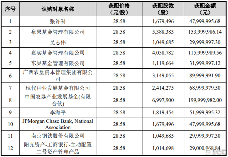 9月9日丨普莱柯(603566.SH)公布2021年非公开发行A股股票发行情况报告书,此次非公开发行股票的发行价格为28.58元/股。此次非公开发行最终募集资金规模约为8.98亿元,发行股数约为3142.0573万股。发行情况如下: