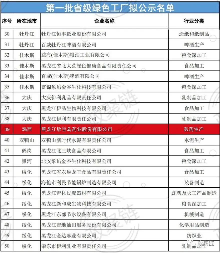 据了解,黑龙江省绿色制造名单评选,旨在完善我省绿色制造体系,全面推行绿色制造,助力工业领域实现碳达峰、碳中和目标,是黑龙江省实现制造业转型升级的重要手段。此次珍宝岛药业入选省级绿色工厂,是黑龙江省对企业实现高质量发展与绿色发展双赢局面的充分认可和高度肯定。