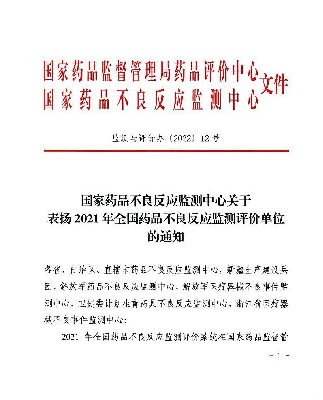 近日,国家药品不良反应监测中心下发了《监测与评价办{2022}12号》文件,通报表扬了“2021年全国药品不良反应监测评价单位”,黑龙江省被表扬的制药企业仅有2家,黑龙江珍宝岛药业股份有限公司位列其中。