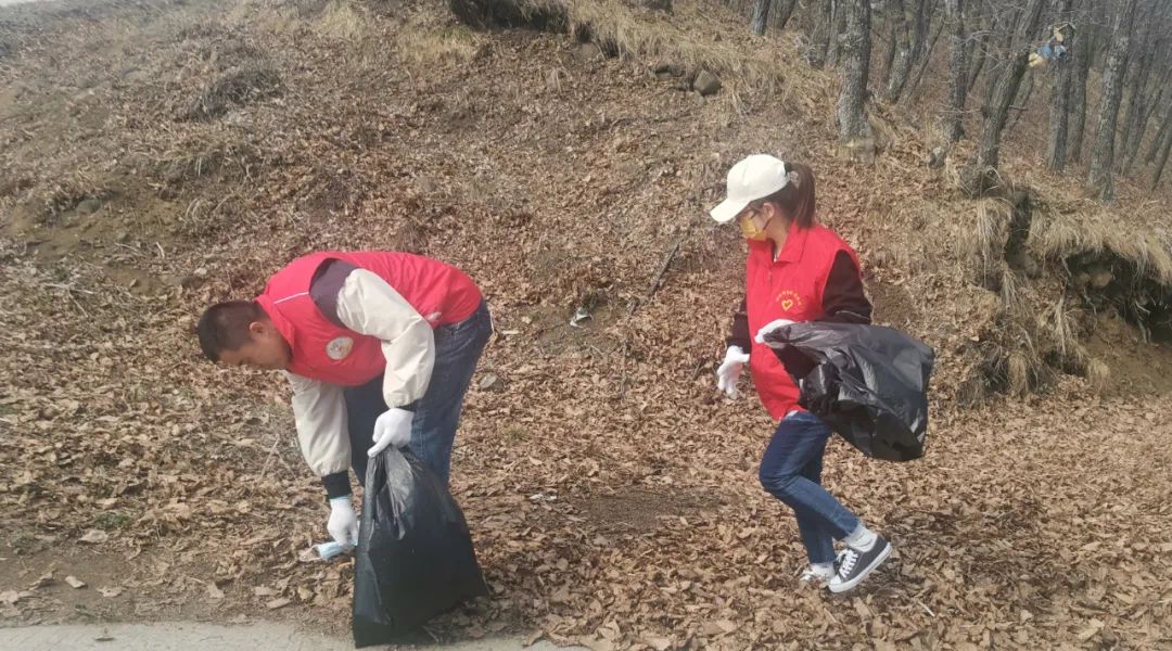 大家自备手套、水靴、剪刀、袋子、皮绳等清扫工具,从石青山的山脚下开始,对环山路两侧的垃圾进行全面清理、装运。有的钻入树林,捡拾白色垃圾;有的摘除破损条幅,更换新貌;有的收堆、撑袋,将垃圾装车运走。醒目的条幅标语,飘扬的志愿服务队队旗,鲜红的志愿者身影,忙碌的劳动场面,构成了一幅五彩斑斓的画卷。