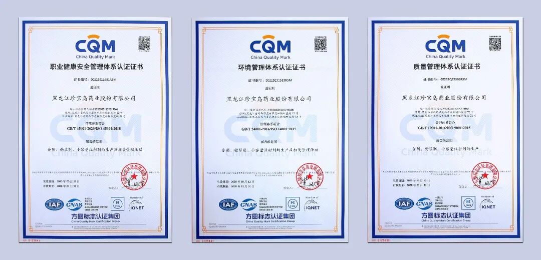 近日,方圆标志认证集团专家组对珍宝岛药业(虎林)进行了“三标一体”体系再认证审核,公司各相关部门全程配合现场审核,顺利通过“三标一体”体系再认证审核,获得体系新版证书。