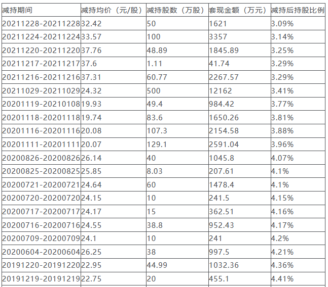 其中,项光明、朱善玉、章锦福、章小建此前已累计减持套现共7.39亿元。