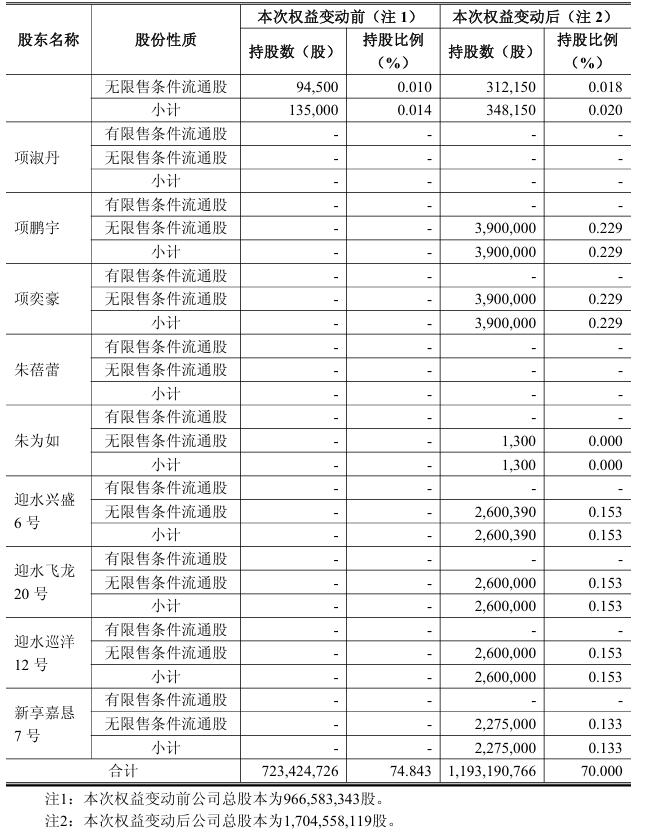 本次权益变动后,信息披露义务人持有公司股份的比例下降至70.000%。