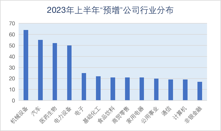 整体来看,机械设备、汽车、医药生物、电力设备四大行业上半年业绩表现亮眼,均有不少于50家公司登上“预增”榜单。