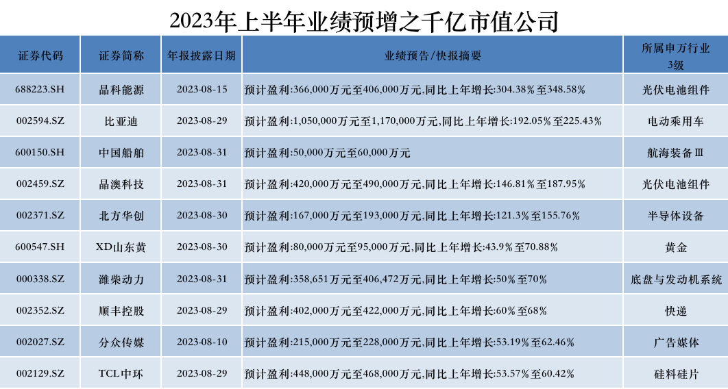 38家千亿市值公司发布了2023年上半年业绩预告或快报。