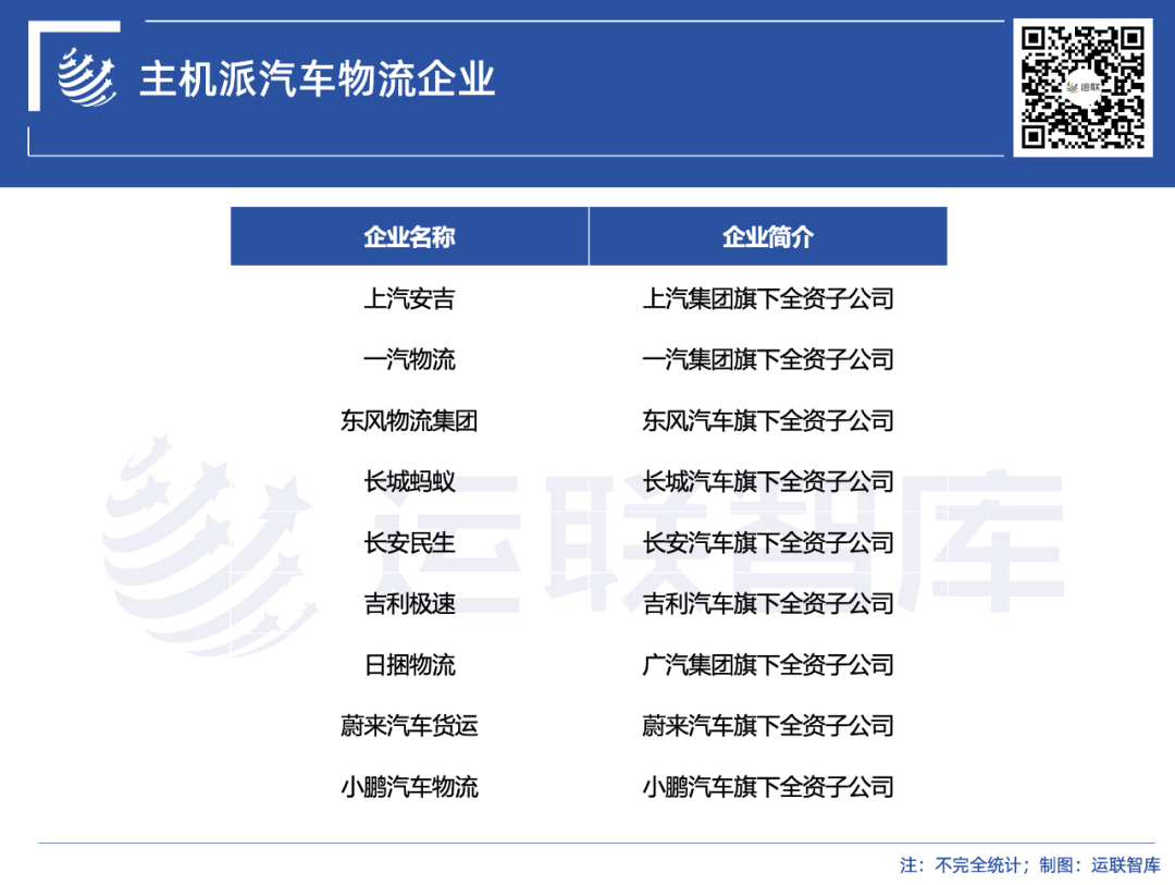 主机派物流企业主要是指汽车企业旗下的全资子公司。上汽安吉、一汽物流和东风物流集团,就是三家典型的主机派物流企业。