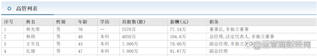 此外,林光荣父子从公司获得的薪资也不少。去年从荣泰健康获得薪酬最多的是林琪,薪资是104.6万。而在同一报告期内,林光荣从公司获得的薪资是公司四位高管中最少的,是77.24万元。王军良去年的薪资是79.6万元。王军良如今还持有公司7万股份。