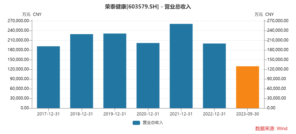 Wind数据显示,2017年至2022年,荣泰健康的营业收入从19.18亿元增长至20.05亿元,归母净利润从2.16亿元降至1.64亿元。